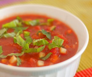 When you take your cold Spanish soup to the table, it’s typical to add a small bowl with chopped diced vegetables (tomato, pepper, onion, cucumber, etc.) so that everyone can add them to their gazpacho to taste.